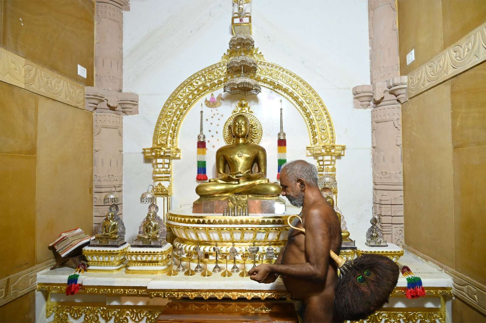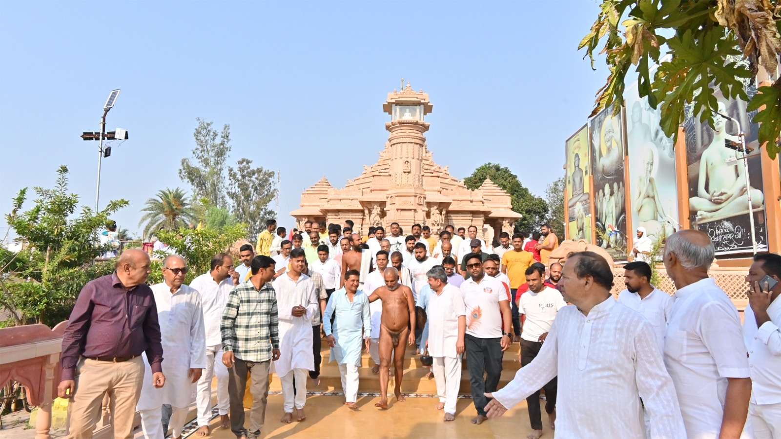 श्री 1008 वासुपूज्य जिनालय का दर्शन करते हुये प.पू. मुनिश्री १०८ प्रमाणसागर जी महाराज ससंघ