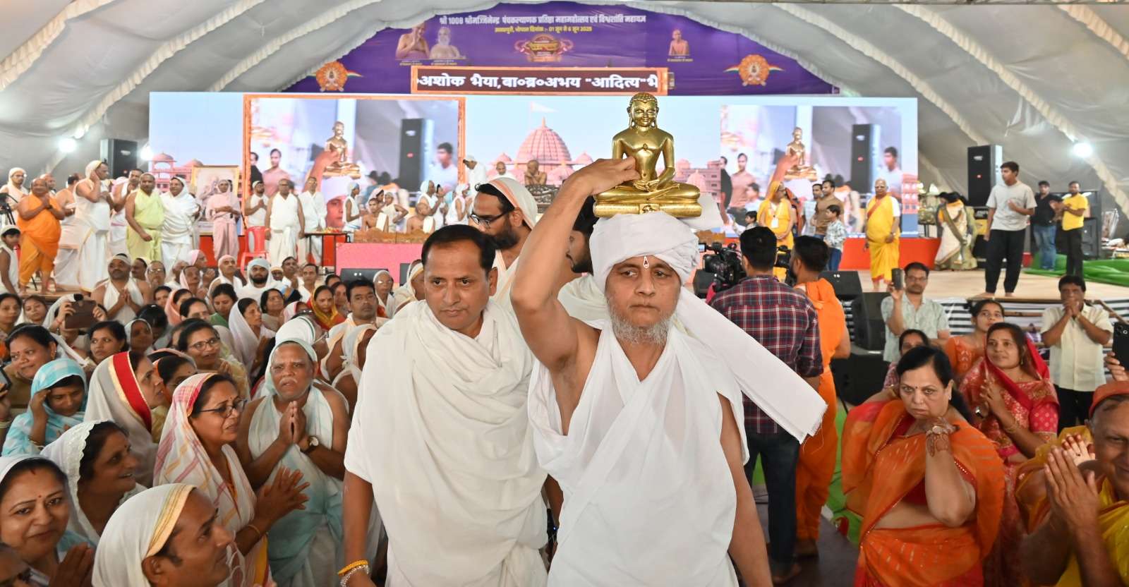 छह माह तक निराहार विचरण के उपरांत, जब मुनि ऋषभदेव ने राजा श्रेयांश के हाथों आहार ग्रहण किया, तब देवताओं ने उन्हें ‘दान तीर्थंकर’ की उपाधि प्रदान की थी। इस पावन परंपरा को पुनर्जीवित किया गया जब राजा श्रेयांश की भूमिका निभा रहे विनीत गोधा एवं राजा सोम की भूमिका में डॉ. शरद जैन के परिवार ने प्रभु का पड़गाहन कर इच्छुरस से आहार दान दिया। प्रवक्ता अविनाश जैन ‘विद्यावाणी’ ने बताया कि यह दृश्य भक्तों के लिए मोक्षमार्ग का जीवंत अनुभव बन गया।