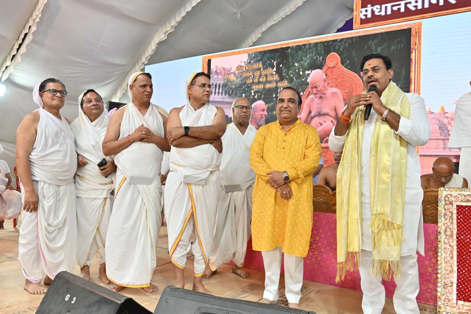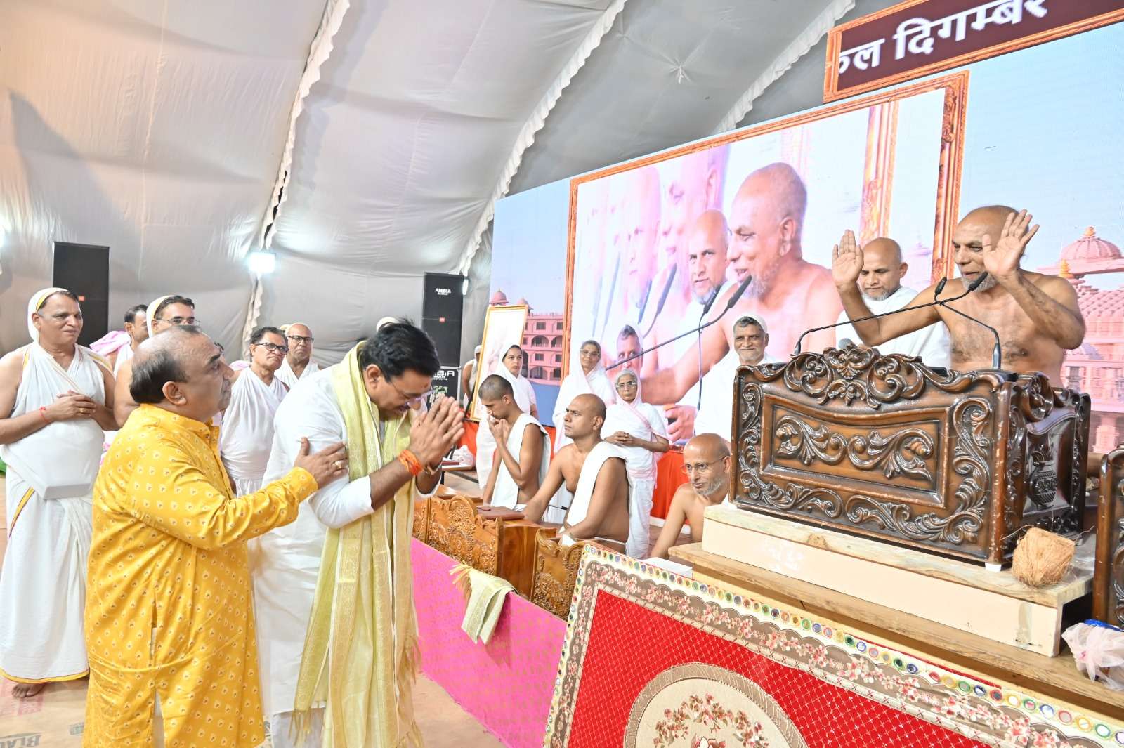 “अपने घर के बजट में संशोधन करें, ऑर्गेनिक आहार अपनाएं और वही शुद्ध आहार साधु-संतों को दें।” इस अवसर पर उपस्थित स्थानीय विधायक रामेश्वर शर्मा ने कहा आज भारत अपनी संस्कृति की सिंह गर्जना कर रहा है। भगवान महावीर का संदेश और ऋषभदेव की तपस्या हमें संयम, समर्पण और संस्कृति की रक्षा करना सिखाती है।”