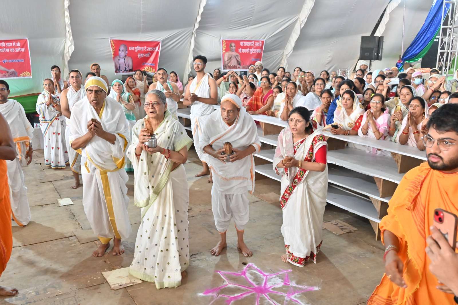 कार्यक्रम का संचालन बाल ब्र. अशोक भैया एवं अभय भैया द्वारा किया गया। समूचा सभास्थल “जय ऋषभदेव”, “जय महावीर”, और “ओम् ऋषभसागर महामुनिंद्राय नमः” के जयकारों से गुंजायमान हो उठा। श्रद्धालुओं ने पुष्पवर्षा करते हुए इस दिव्य आहारदान को मोक्षमार्ग की साक्षात सीढ़ी कहा।