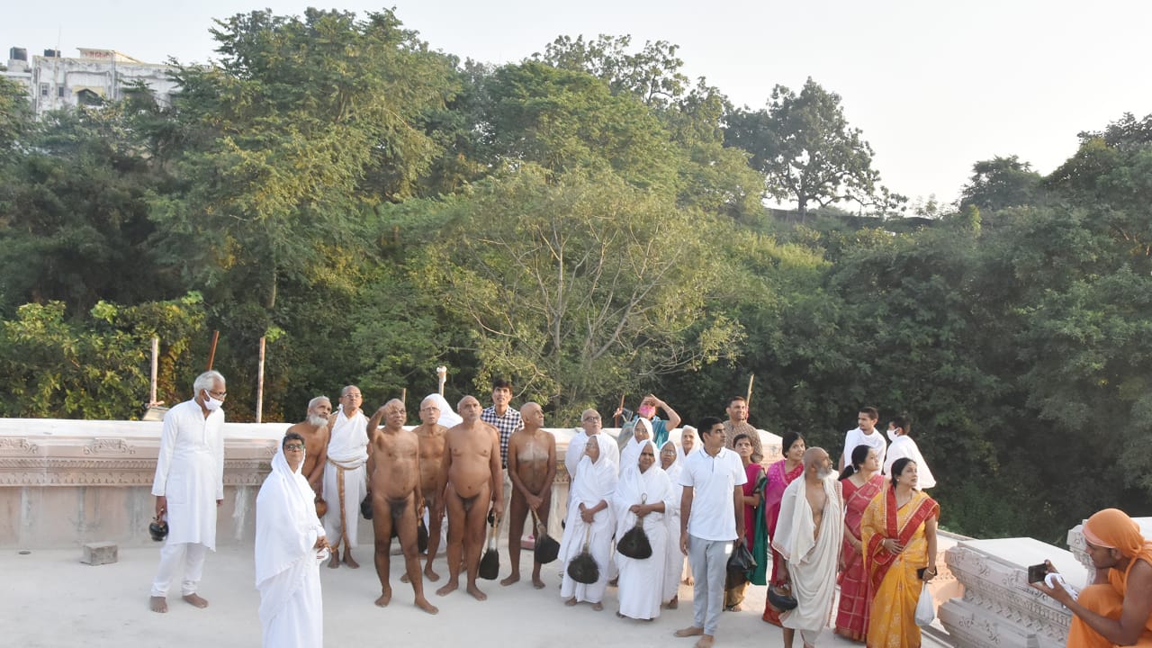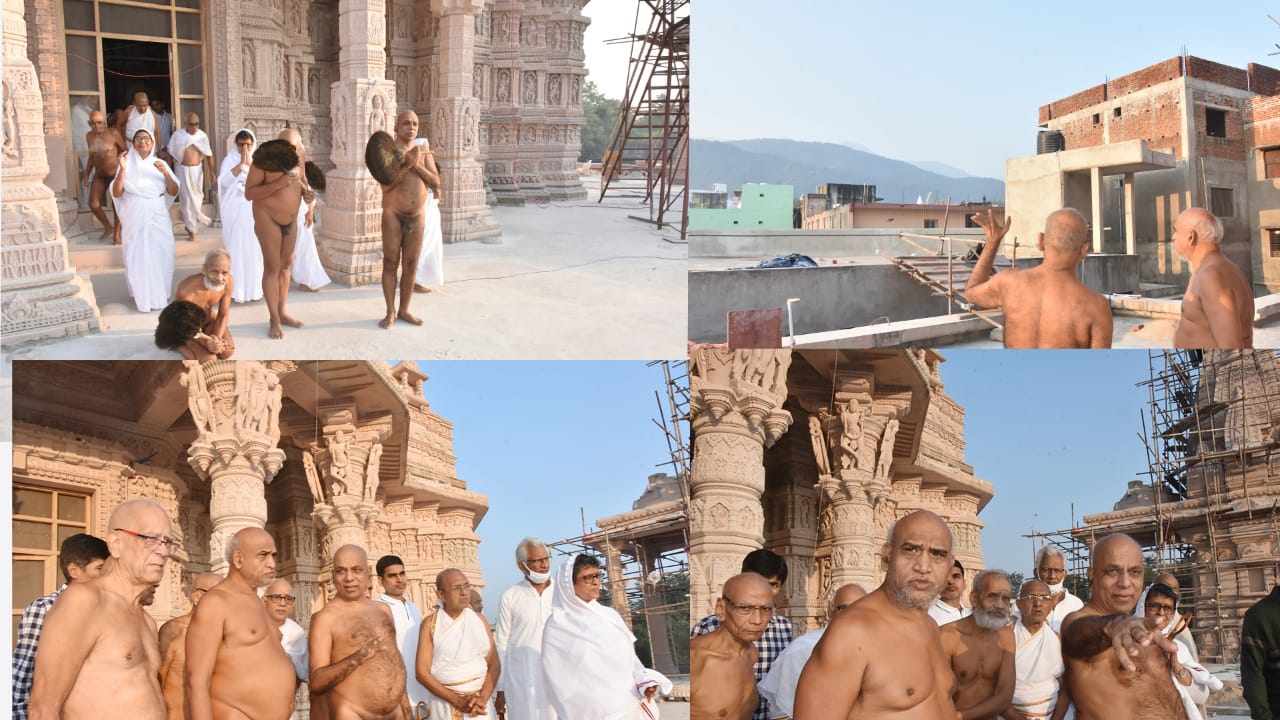 पूज्य मुनिसंघ ने ज्ञान-मन्दिर -गुणायतन का अवलोकन किया, इसके पश्चयात सभी श्रद्धालुओं को दोनों संघों के सानिध्य में अभिषेक-शांतिधारा एवं आशीष वचन का लाभ मिला