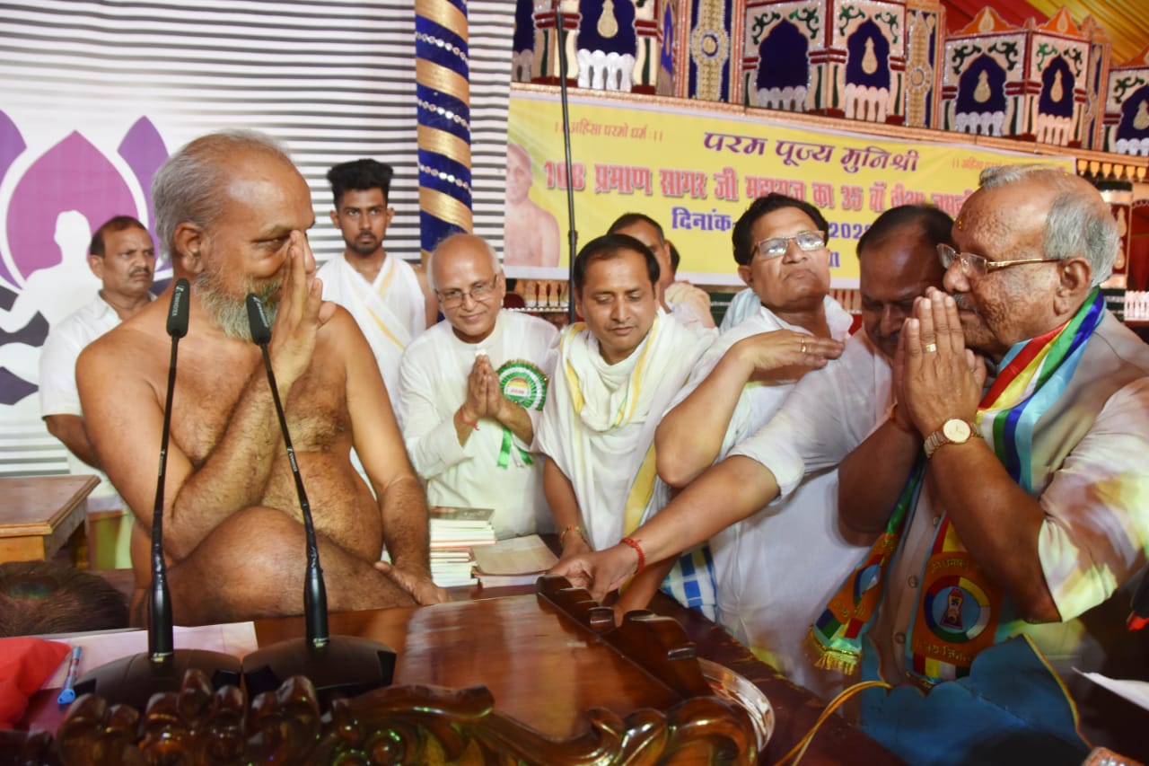 ने परम पूज्य मुनि श्री 108 प्रमाण सागर जी महाराज संसंघ के दर्शन कर आशीर्वाद प्राप्त किया