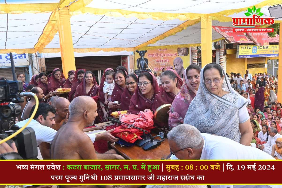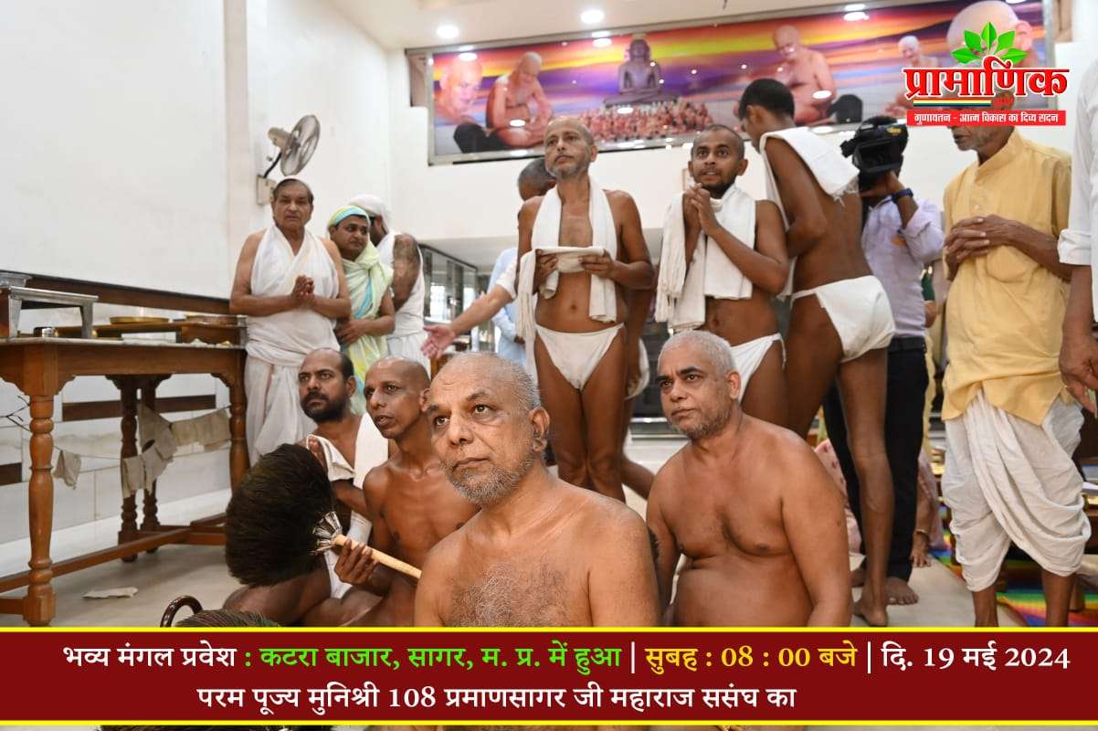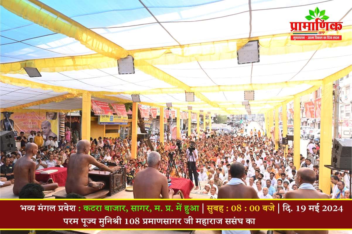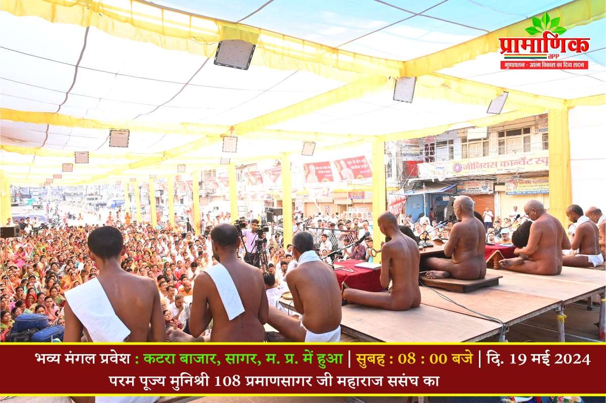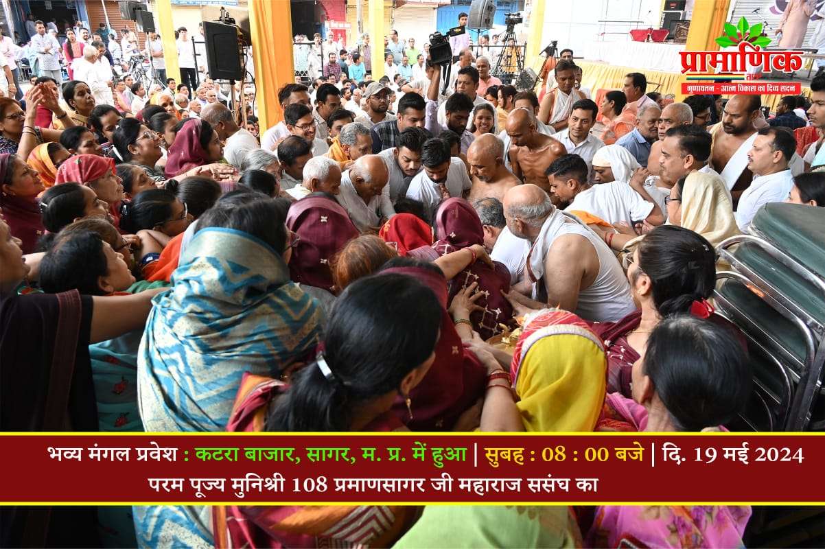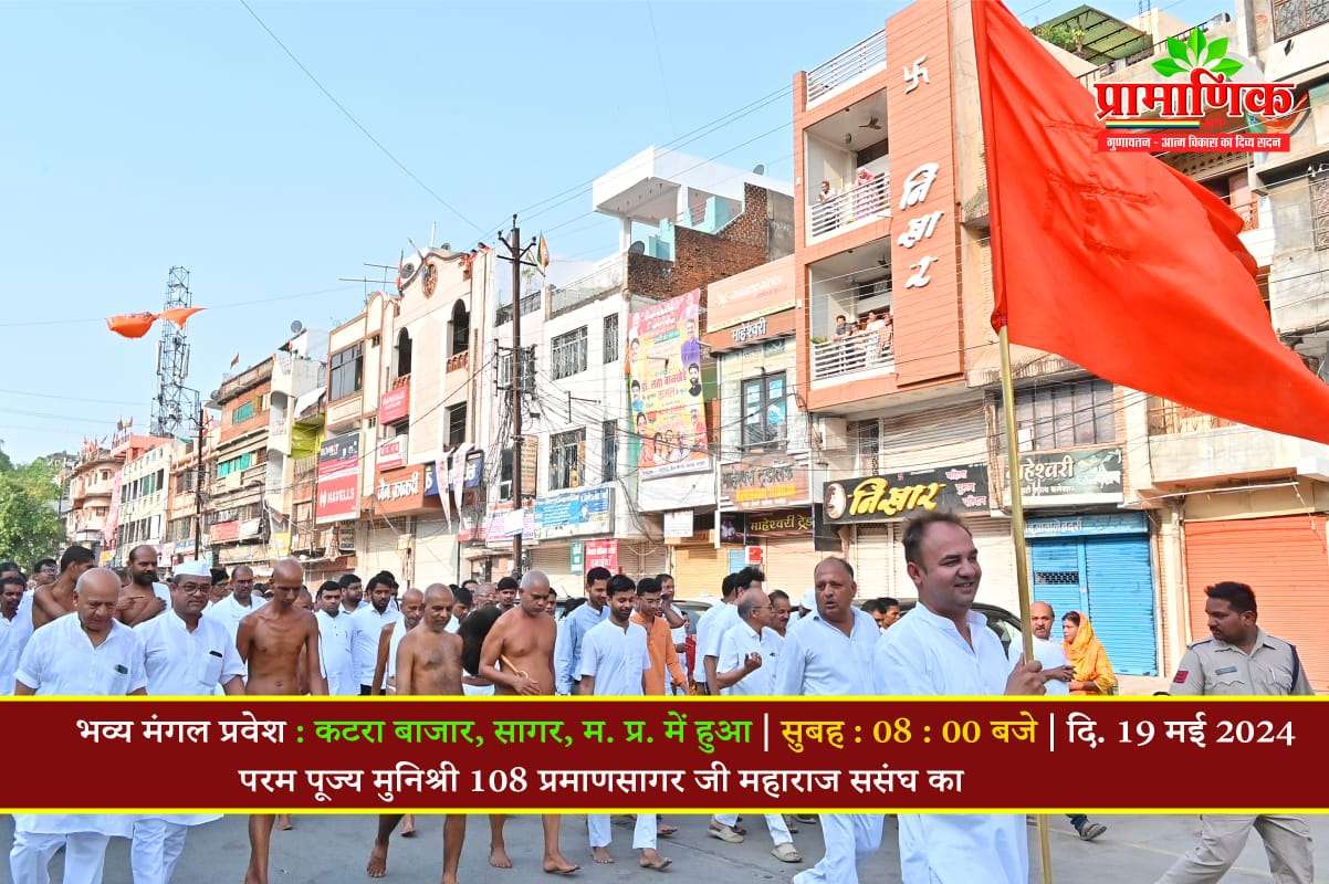 19मई2024 को मुनिश्री प्रमाणसागर जी महाराज का ससंघ कटरा बाजार, सागर प्रवेश हुआ