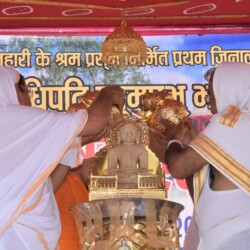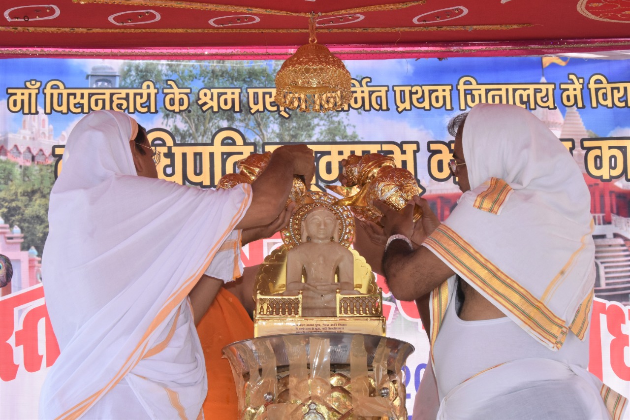 मढ़िया जी को तीर्थ बनाने वाली मां पिसनहारी द्वारा 650 वर्ष प्राचीन प्रथम जिनालय में स्थापित मूलनायक श्री 1008 भगवान पद्मप्रभ स्वामी के महा-मस्तकाभिषेक एवं शांतिधारा का आयोजन पूज्य मुनिश्री 108 प्रमाणसागर जी महाराज-मुनिश्री 108 अरहसागर जी महाराज ससंघ एवं आर्यिका रत्न 105 श्री दृढ़मति माताजी ससंघ के पावन सानिध्य में किया गया.