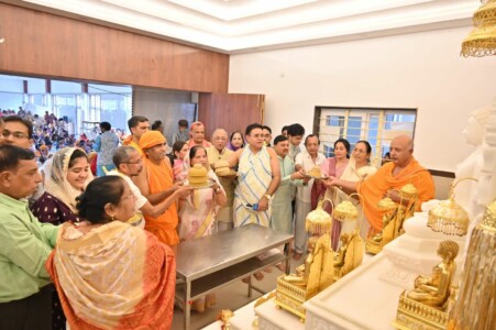 2550वें मोक्ष कल्याणक महामहोत्सव के पावन अवसर पर निर्वाण लाडू चढ़ाया गया।