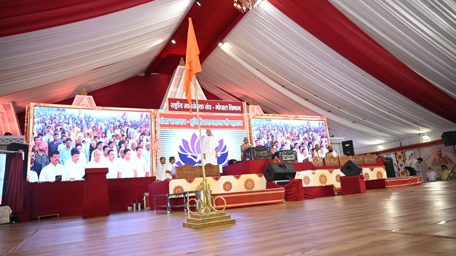 अवधपुरी स्थित श्री विद्यासागर प्रबंधकीय संस्थान, विद्याप्रमाण गुरुकुलम् में रविवार को राष्ट्रीय स्वयंसेवक संघ का शताब्दी वर्ष समारोह, भावनायोग प्रवर्तक मुनिश्री प्रमाणसागर जी महाराज के सान्निध्य में मनाया गया। इस अवसर पर पाँच हज़ार से अधिक महिलाओं और पुरुषों ने सहभागिता की। पूरा पंडाल श्रद्धालुओं से खचाखच भरा हुआ था।