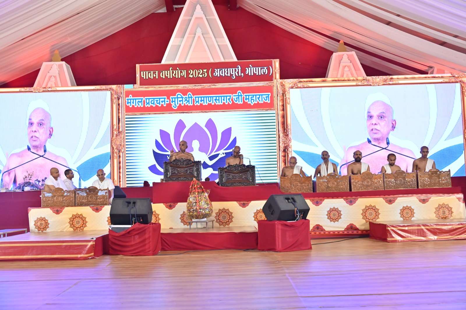 मुनिश्री प्रमाणसागर ने अपने प्रवचन में कहा — “ सच्चाई और नैतिकता जीवन की रीढ़ है, करुणा और सहयोग हमारे जीवन का रक्त है, अनुशासन और संयम हमारी साँसें हैं, धर्म और मूल्य हमारी आत्मा हैं।