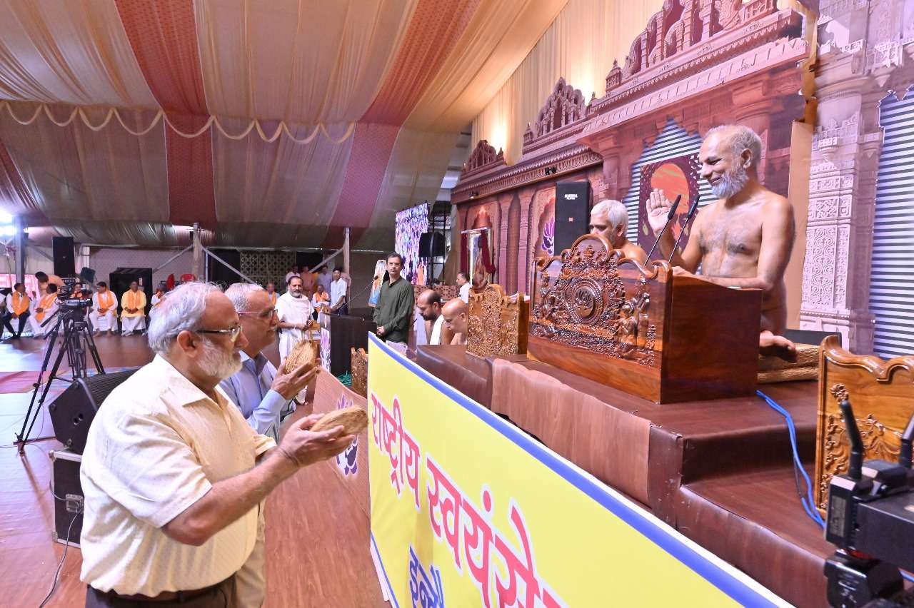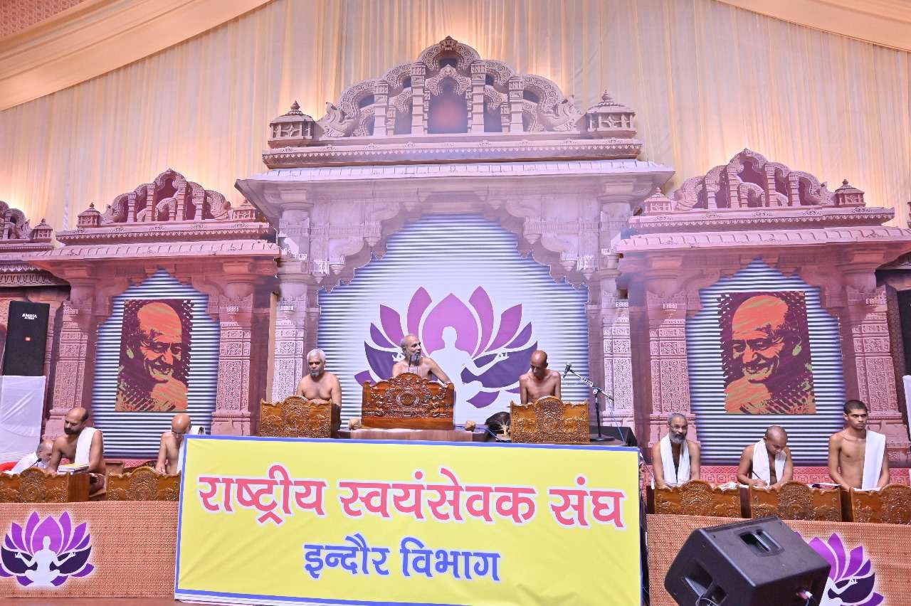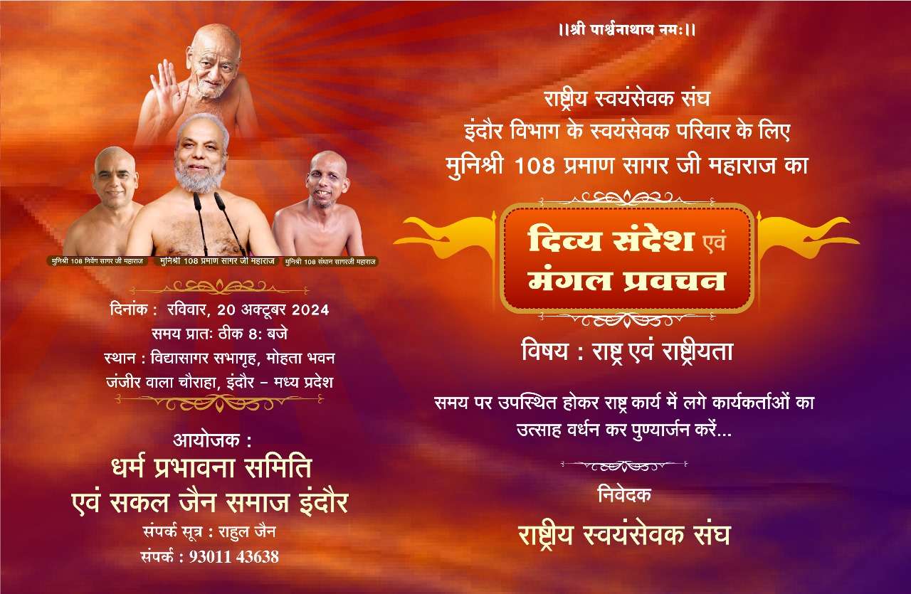 राष्ट्रीय स्वंयसेवक संघ इंदौर के स्वंयसेवकों को संबोधित करते हुये पूज्य मुनिश्री 108 प्रमाणसागर महाराज
