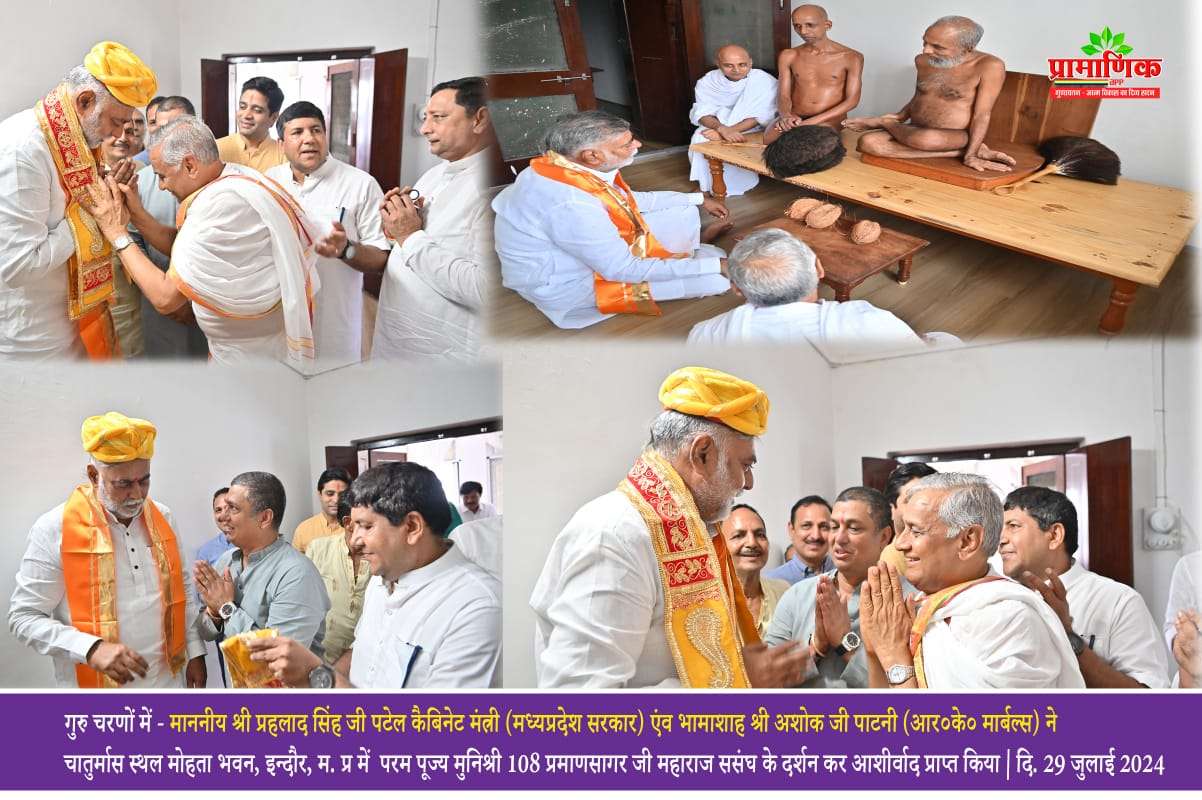 परम पूज्य मुनिश्री 108 प्रमाणसागर जी महाराज ससंघ के दर्शन कर आशीर्वाद प्राप्त किया।