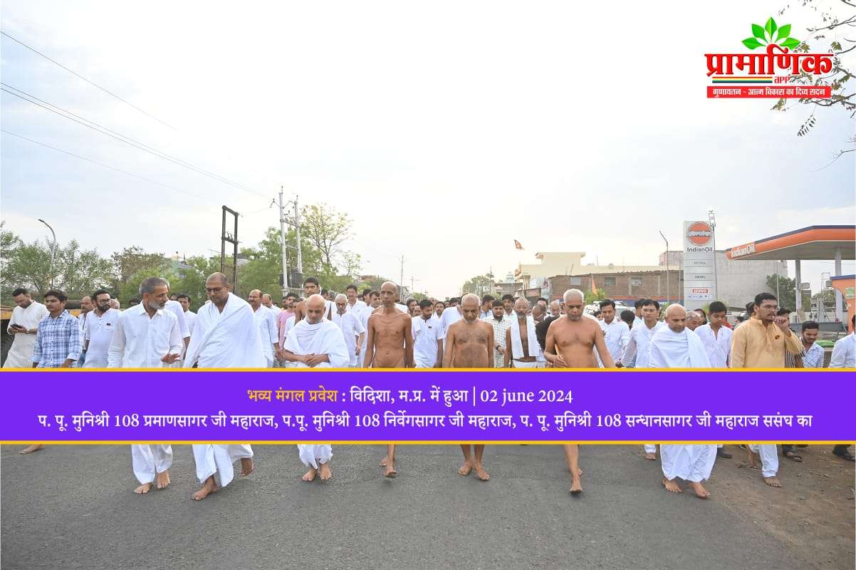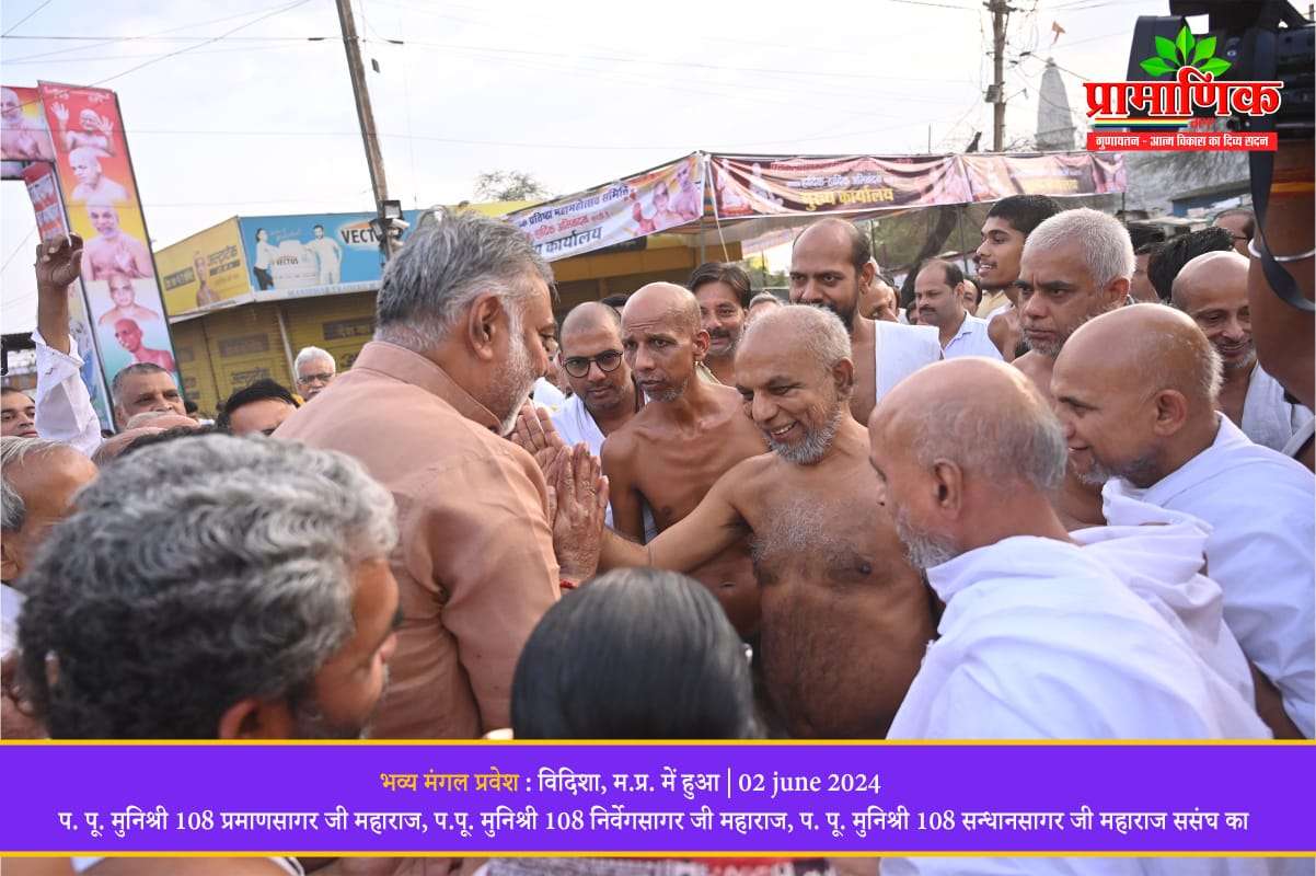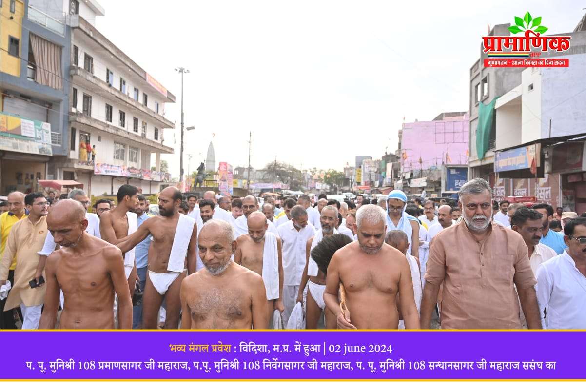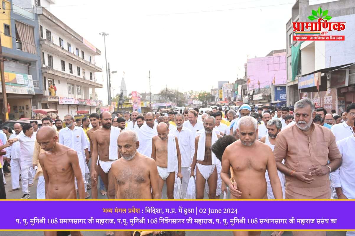 02जून2024 को मुनिश्री प्रमाणसागर जी महाराज का ससंघ विदिशा में मंगल प्रवेश हुआ