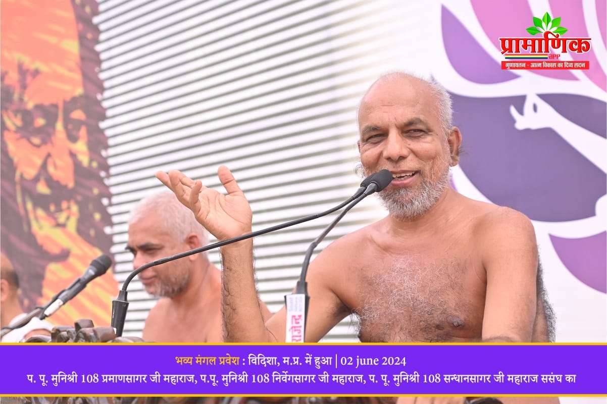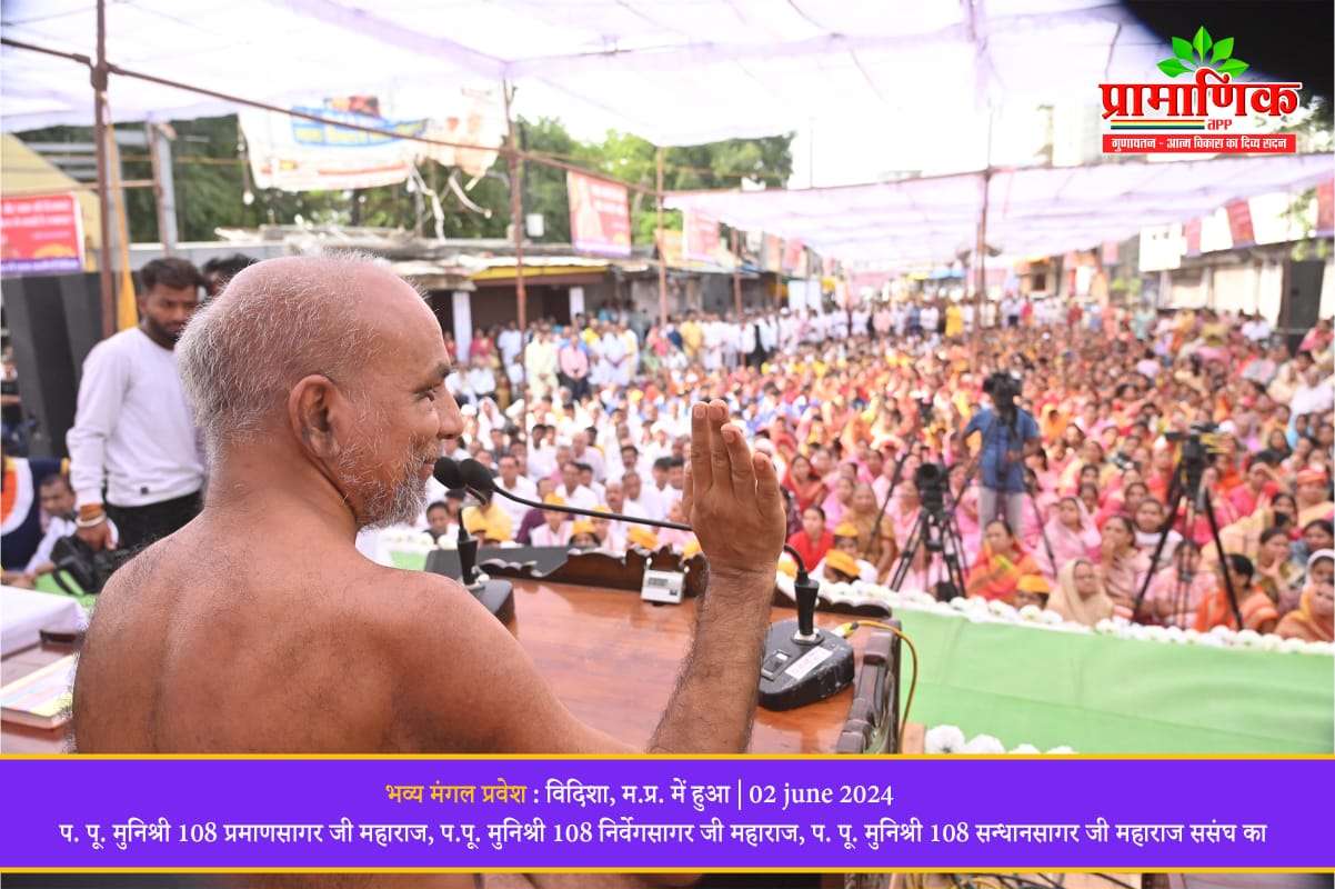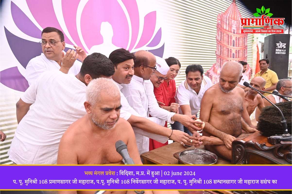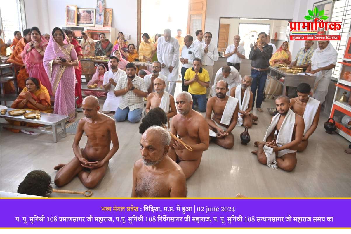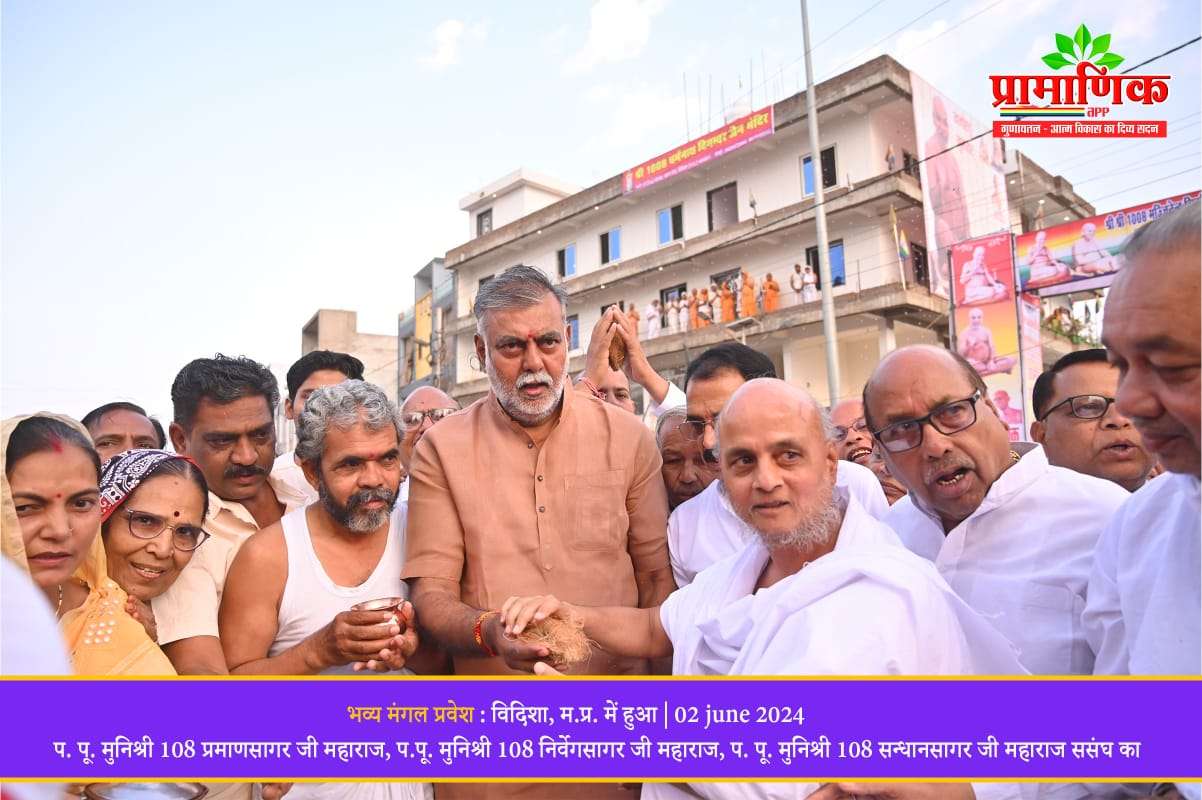 02जून2024 को मुनिश्री प्रमाणसागर जी महाराज का ससंघ विदिशा में मंगल प्रवेश हुआ