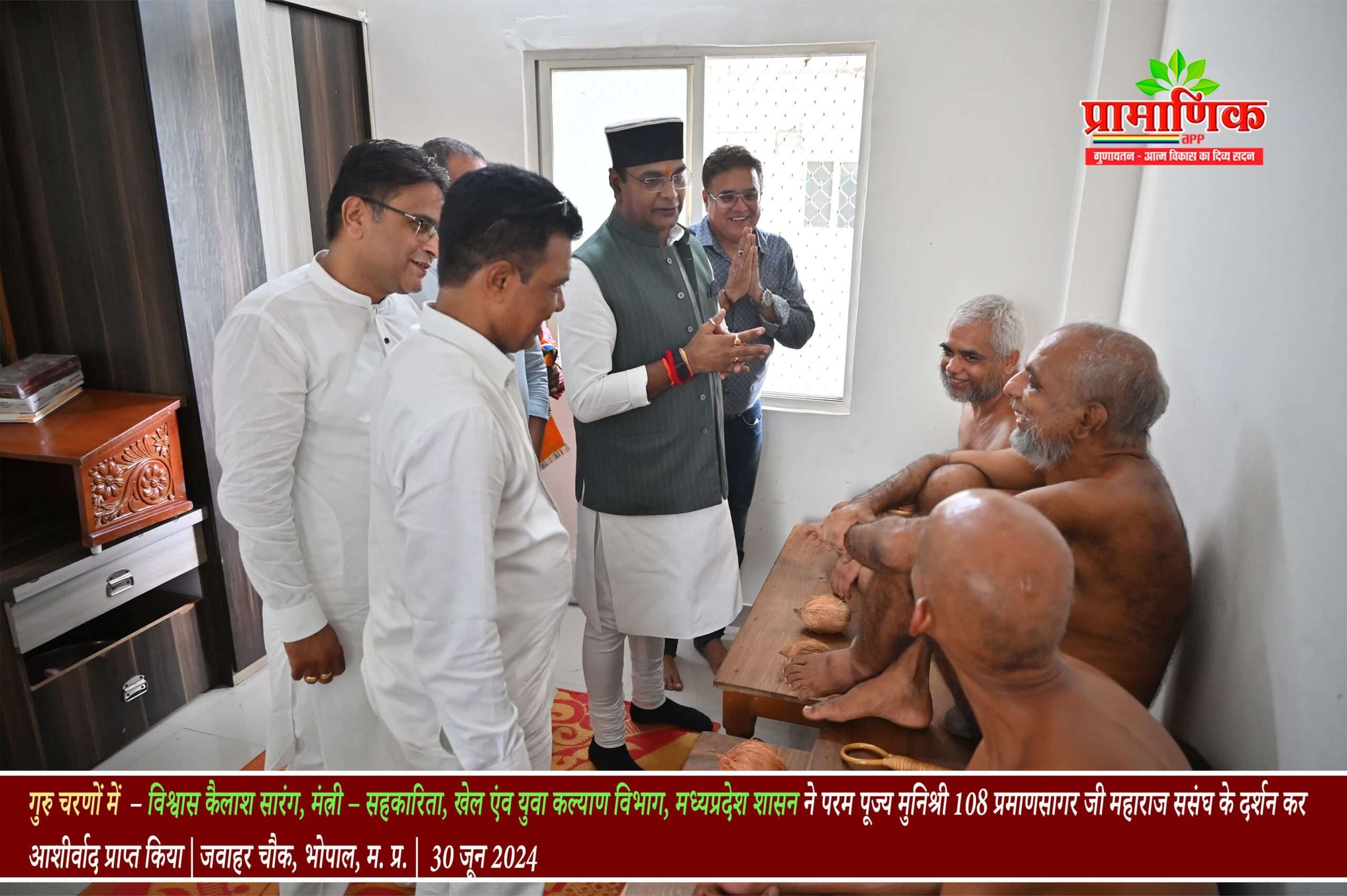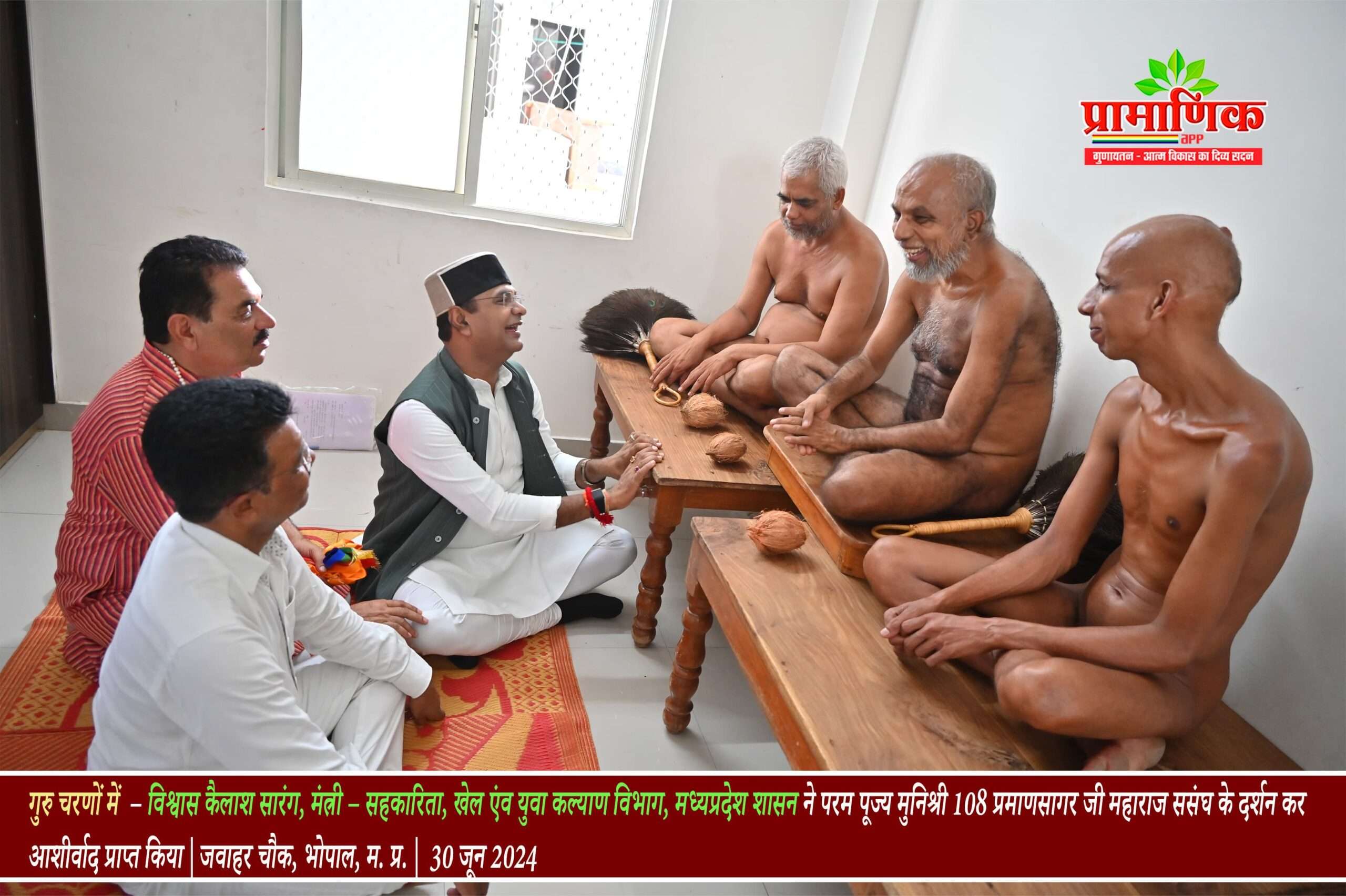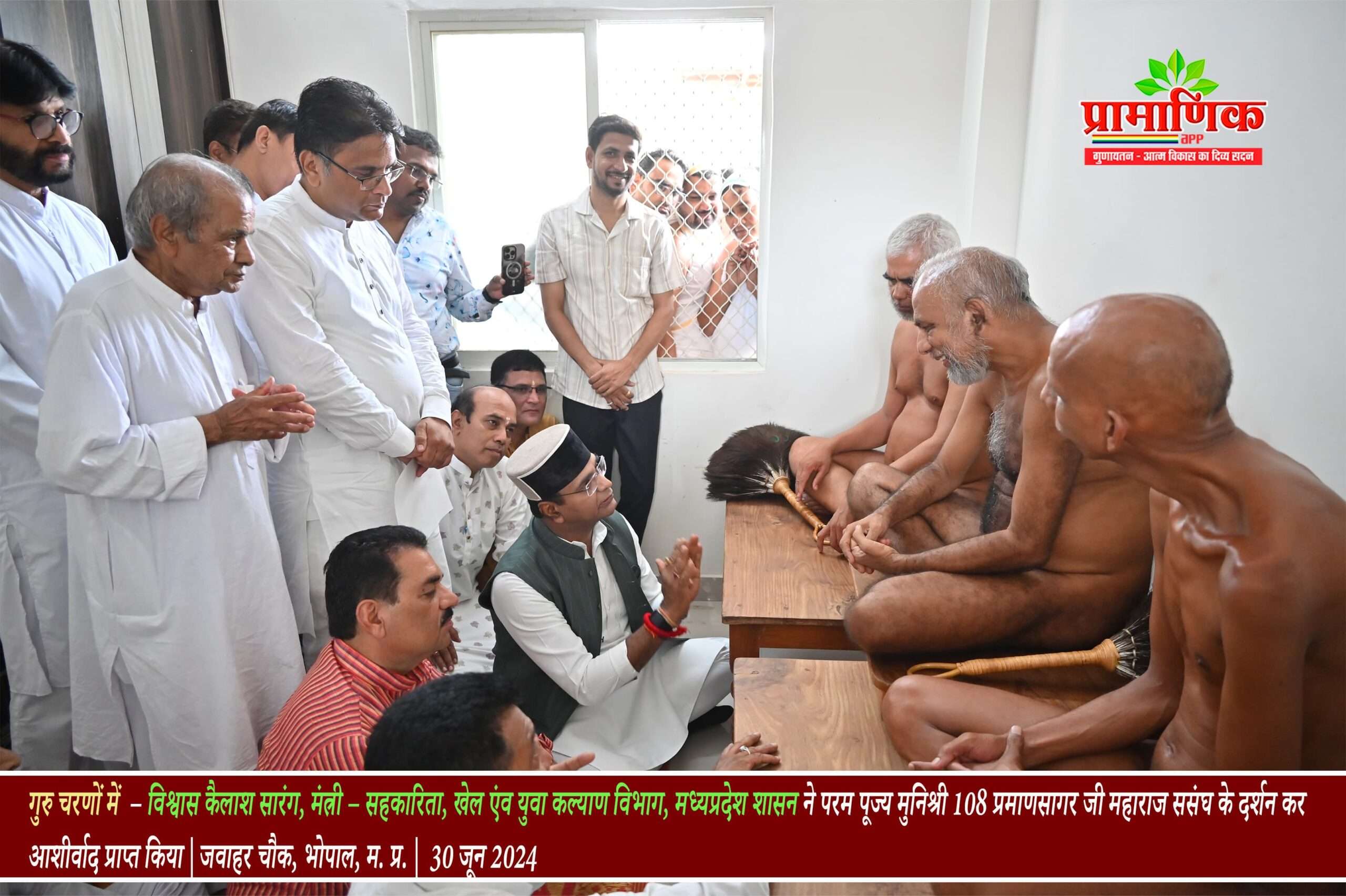 परम पूज्य मुनिश्री 108 प्रमाणसागर जी महाराज ससंघ के भोपाल में दर्शन कर आशीर्वाद प्राप्त किया।