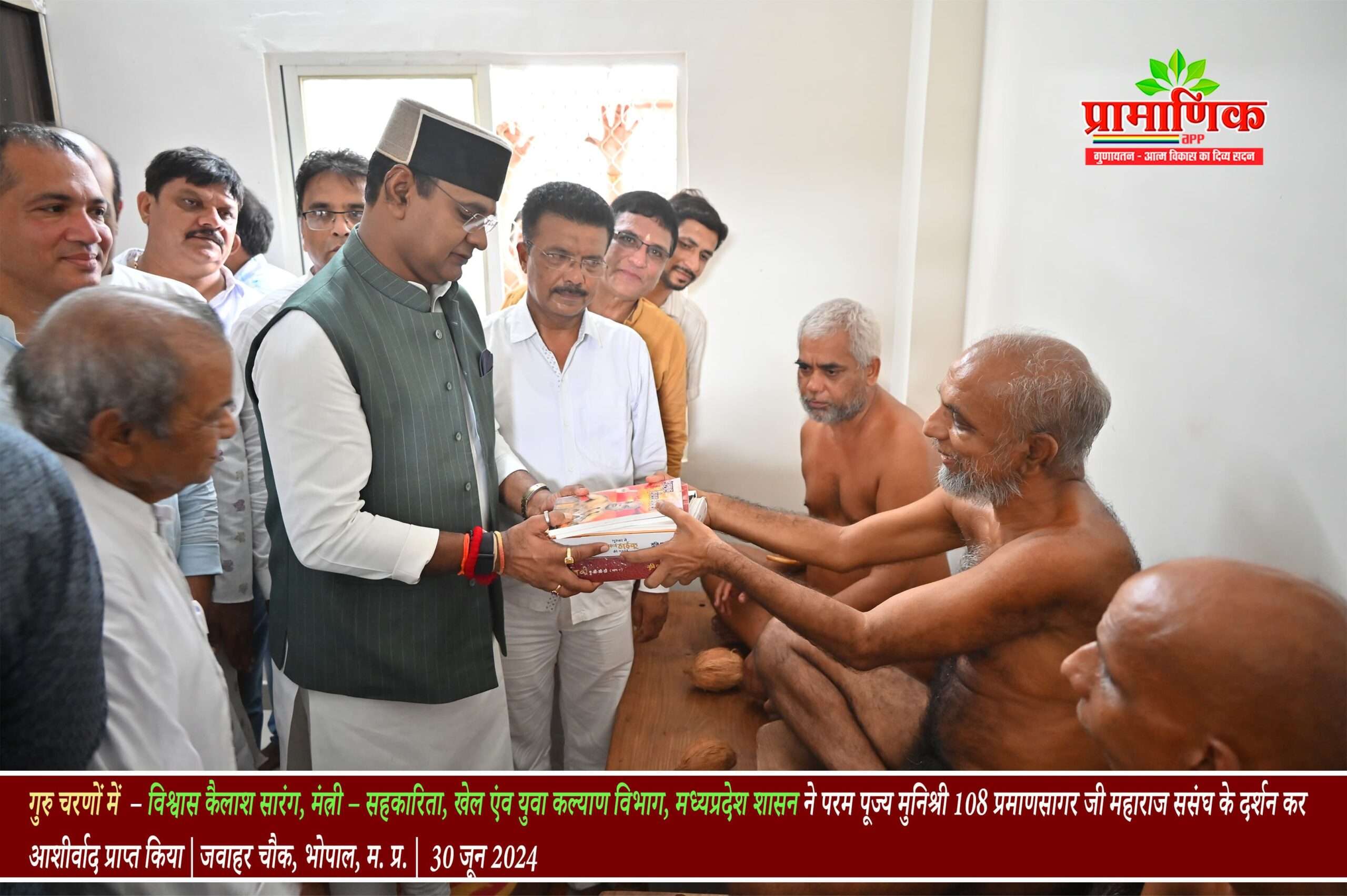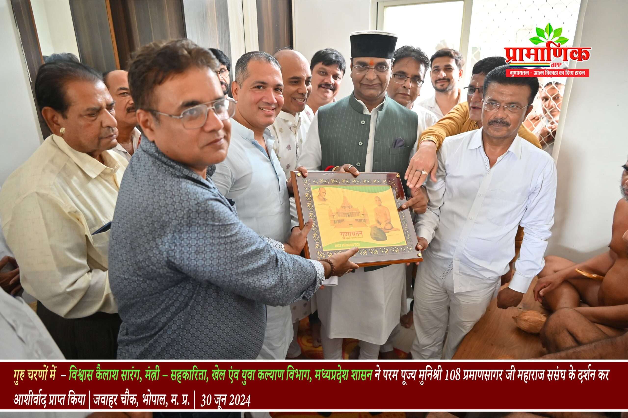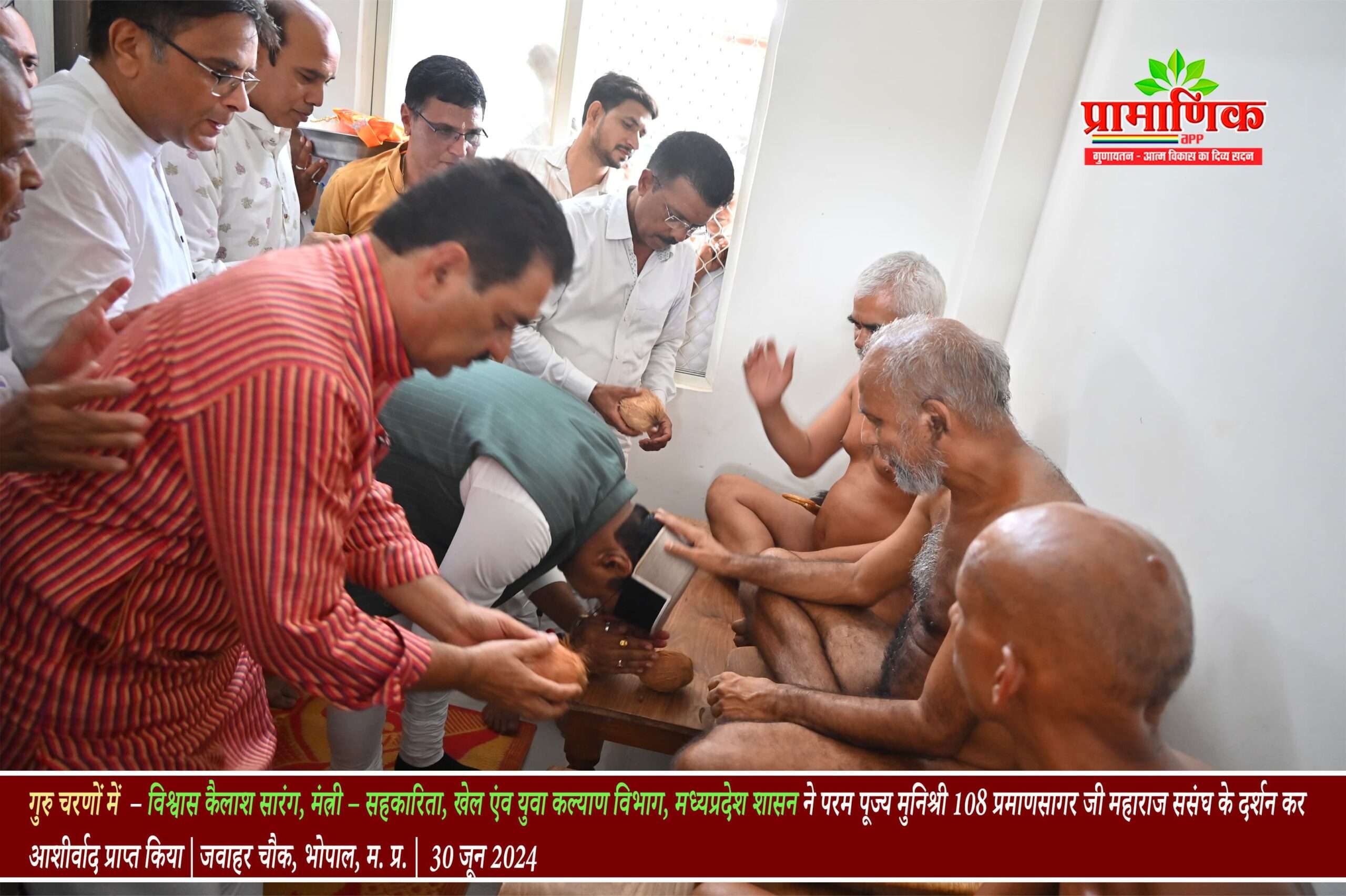 परम पूज्य मुनिश्री 108 प्रमाणसागर जी महाराज ससंघ के भोपाल में दर्शन कर आशीर्वाद प्राप्त किया।